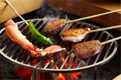 昼、夜の炭火使用のコース料理