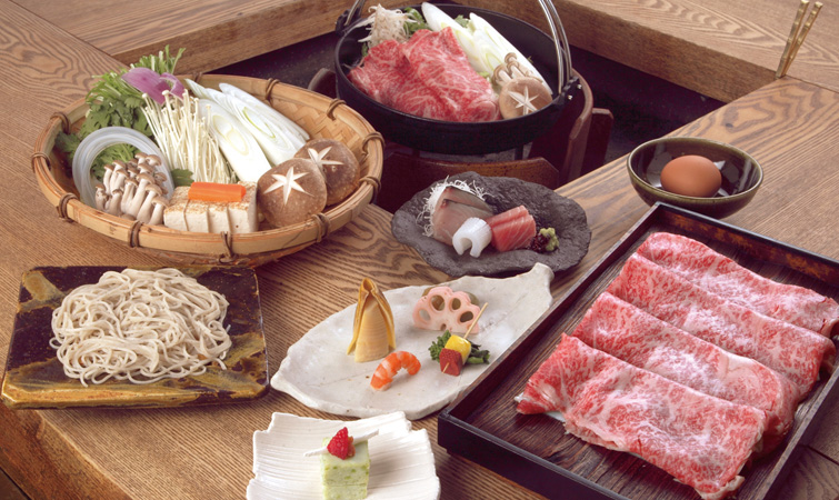 手打ちそば 、 懐石料理 、 炭焼ステーキ 、 しゃぶしゃぶ を中心とした