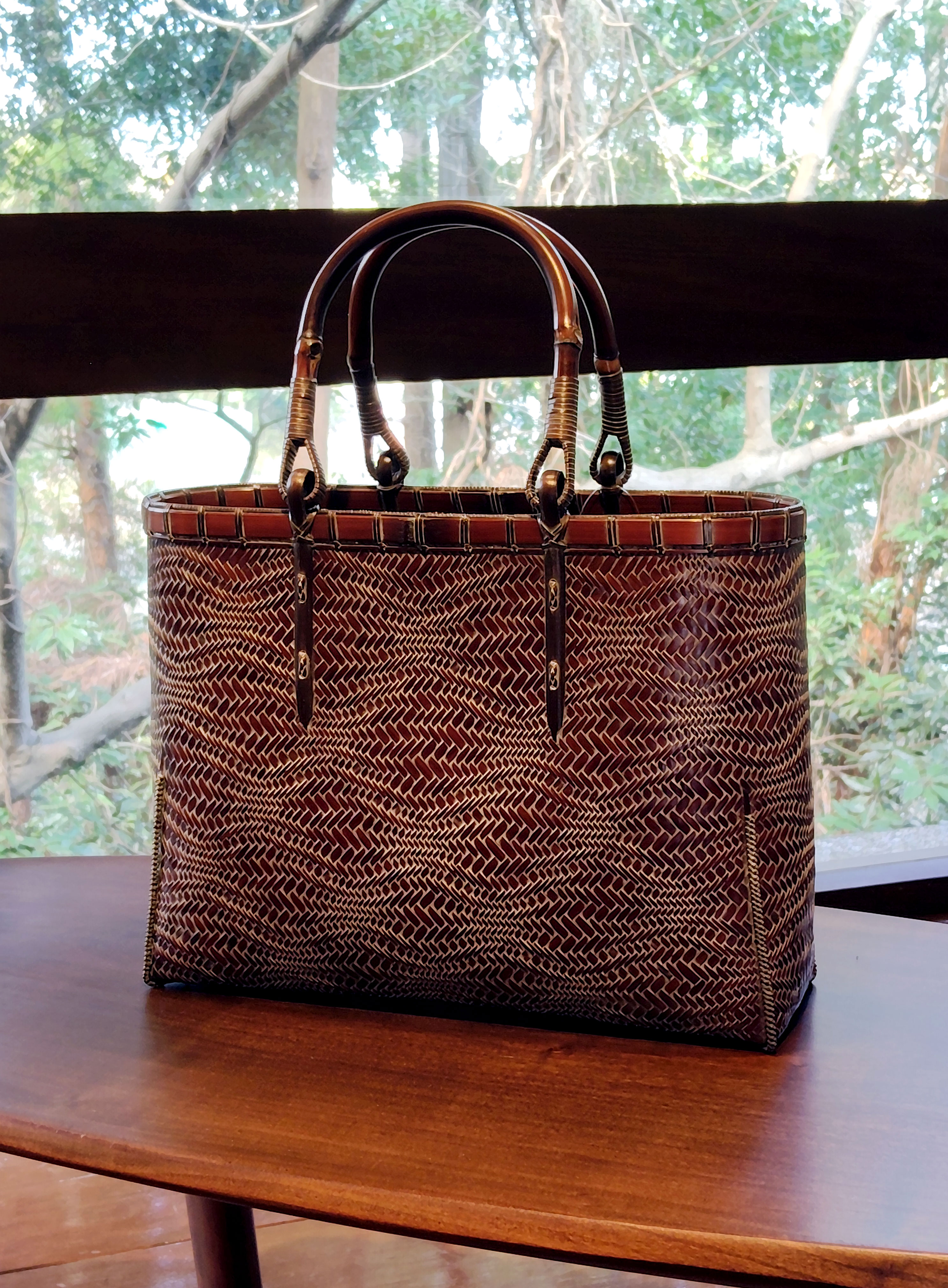 手仕事で丹念に編み込んだ竹のバッグは繊細でしなやか。時と共に色艶も深くなりいっそう美しさが増していきます。
