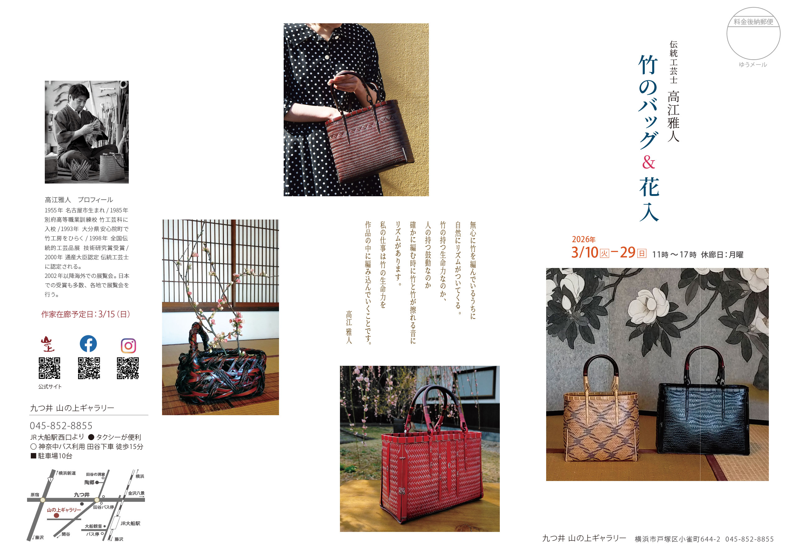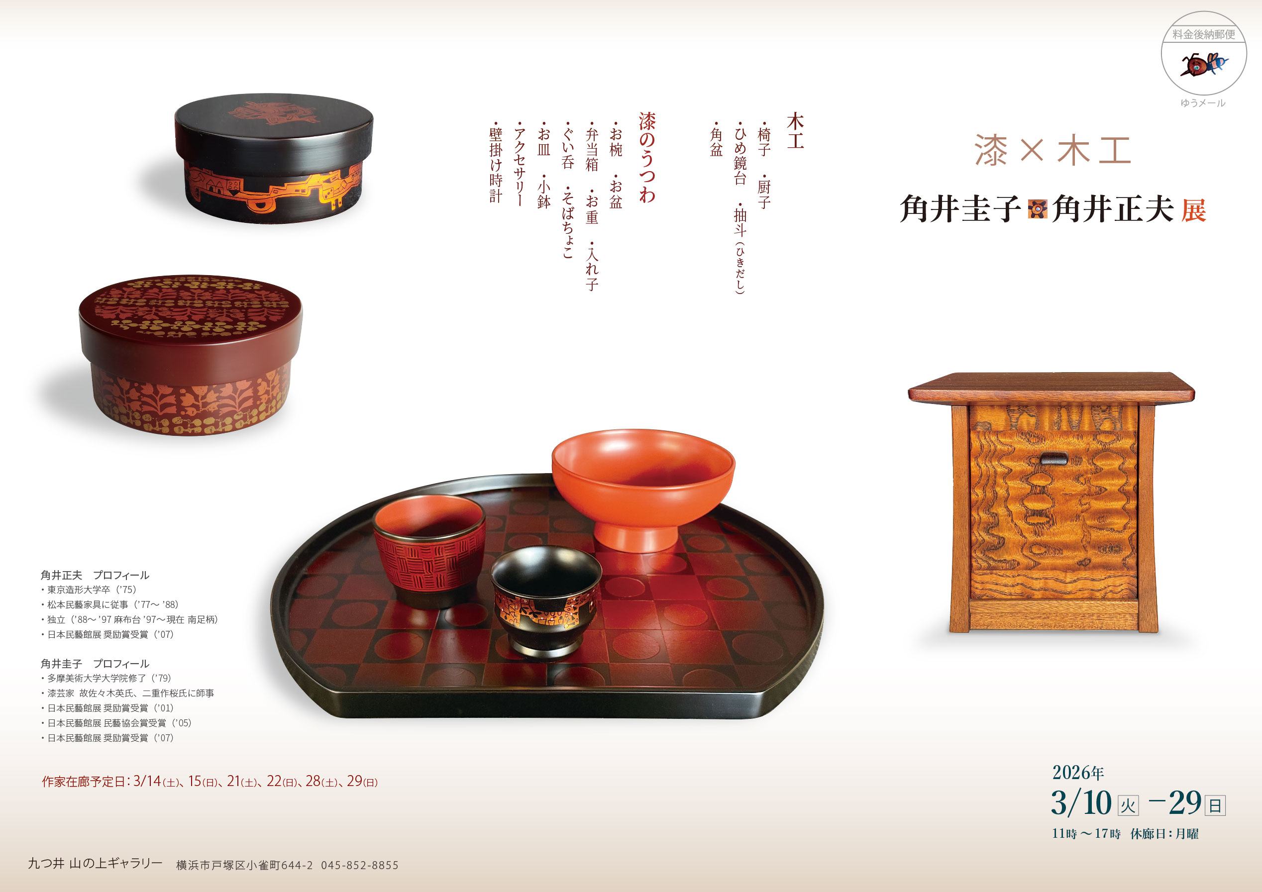 会期:2026年 3/10(火)–3/29(日) 11時~17時 休廊日:月曜日